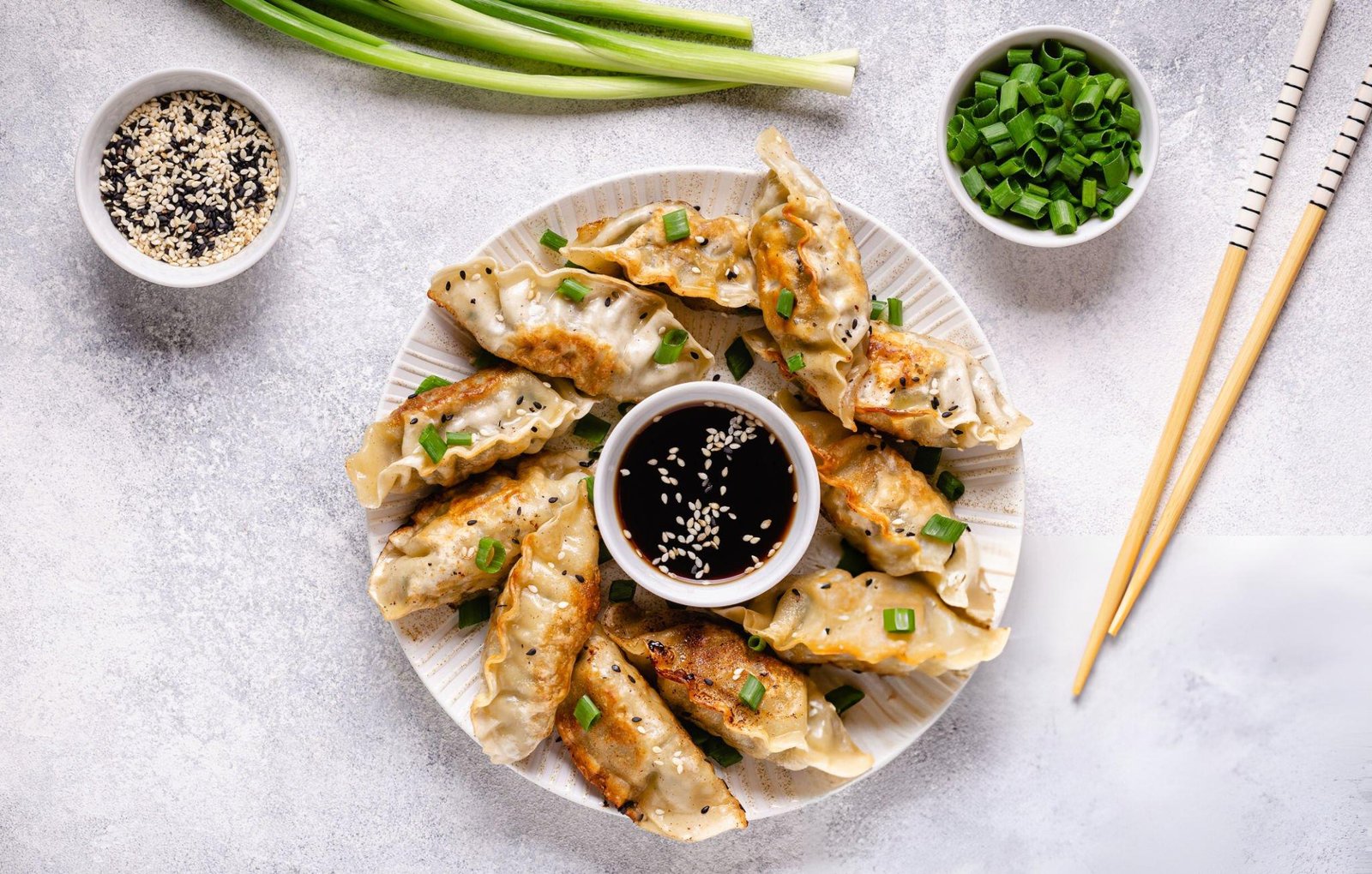 mixed greens, cucu, tomato, red onion with 5 pcs of gyoza